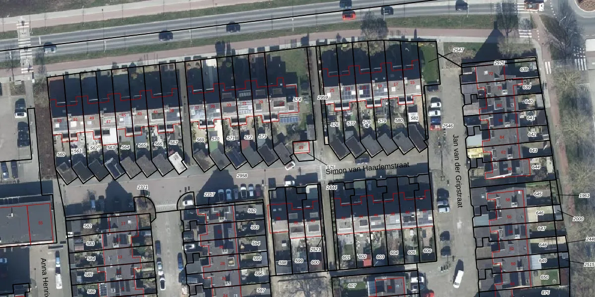 Het perceel waarop Simon van Haarlemstraat 19 staat heeft een oppervlakte van 43 m². Dit is een klein perceel. De perceeloppervlakte wordt geregistreerd door het Kadaster. Gedetailleerde informatie over de maten van dit perceel kunt u vinden in het rapport Kadastrale kaart met maatvoering van Simon van Haarlemstraat 19.