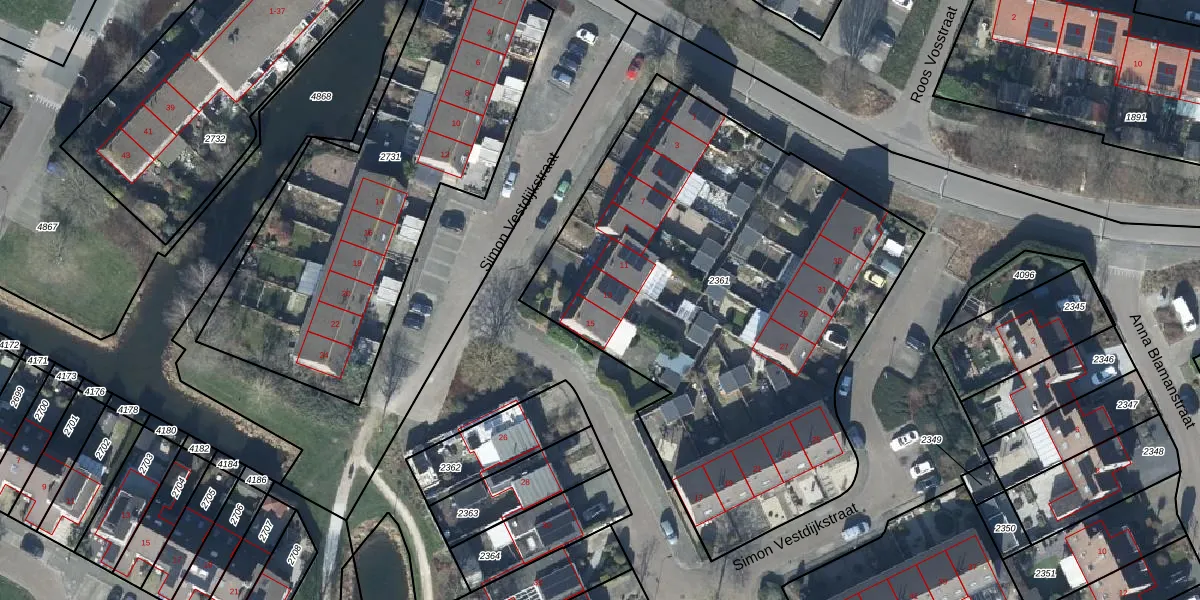 Het perceel waarop Simon Vestdijkstraat 13 staat heeft een oppervlakte van 2850 m². Dit is een zeer groot perceel. De perceeloppervlakte wordt geregistreerd door het Kadaster. Gedetailleerde informatie over de maten van dit perceel kunt u vinden in het rapport Kadastrale kaart met maatvoering van Simon Vestdijkstraat 13.