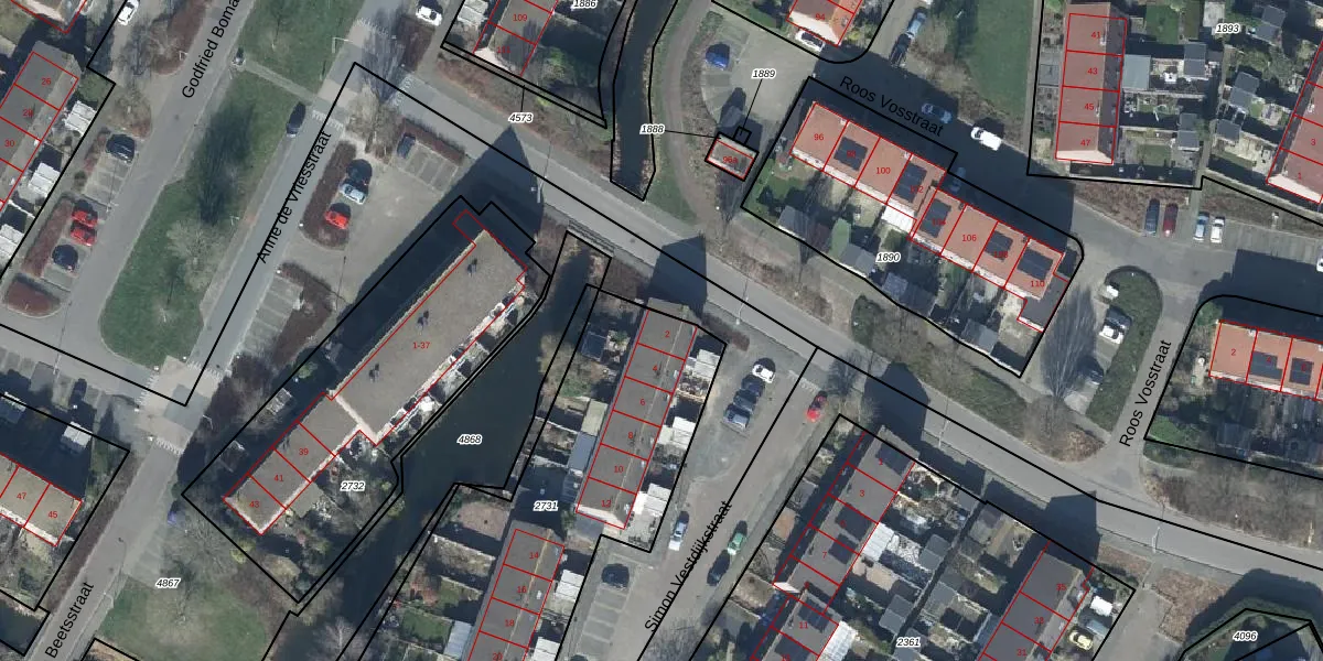 Het perceel waarop Simon Vestdijkstraat 2 staat heeft een oppervlakte van 1775 m². Dit is een zeer groot perceel. De perceeloppervlakte wordt geregistreerd door het Kadaster. Gedetailleerde informatie over de maten van dit perceel kunt u vinden in het rapport Kadastrale kaart met maatvoering van Simon Vestdijkstraat 2.