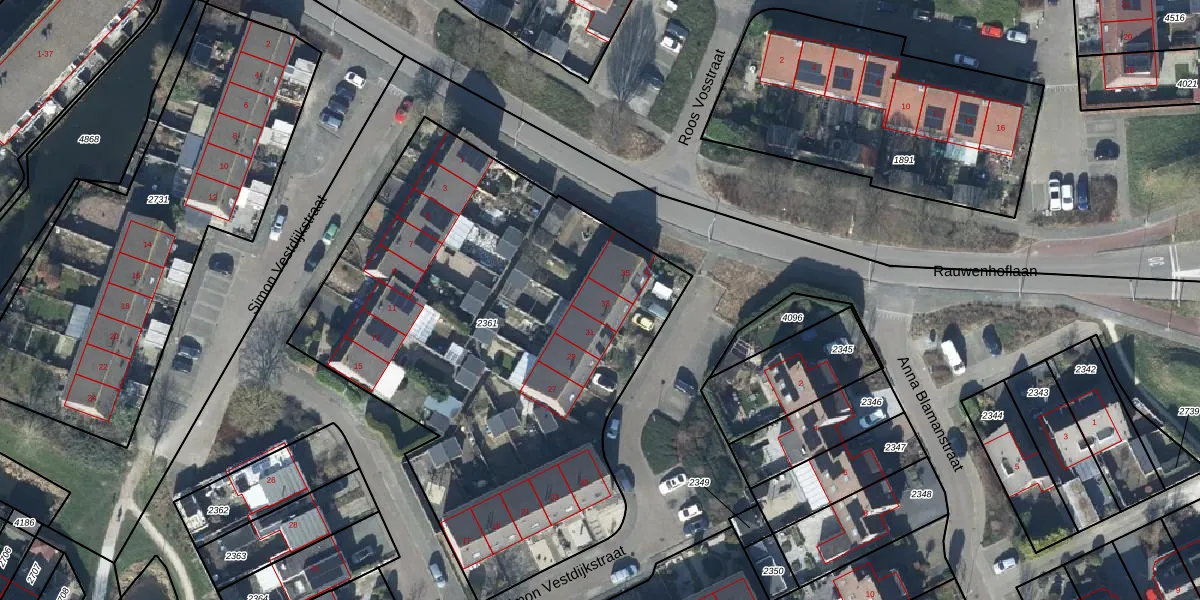 Het perceel waarop Simon Vestdijkstraat 33 staat heeft een oppervlakte van 2850 m². Dit is een zeer groot perceel. De perceeloppervlakte wordt geregistreerd door het Kadaster. Gedetailleerde informatie over de maten van dit perceel kunt u vinden in het rapport Kadastrale kaart met maatvoering van Simon Vestdijkstraat 33.