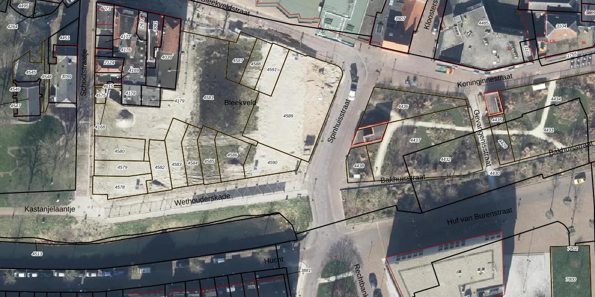 Het perceel waarop Spinhuisstraat 24 staat heeft een oppervlakte van 690 m². Dit is een groot perceel. De perceeloppervlakte wordt geregistreerd door het Kadaster. Gedetailleerde informatie over de maten van dit perceel kunt u vinden in het rapport Kadastrale kaart met maatvoering van Spinhuisstraat 24.
