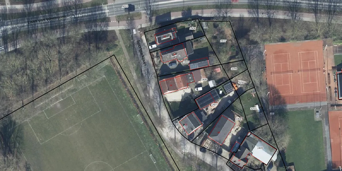 Het perceel waarop Sportparklaan 34 staat heeft een oppervlakte van 724 m². Dit is een groot perceel. De perceeloppervlakte wordt geregistreerd door het Kadaster. Gedetailleerde informatie over de maten van dit perceel kunt u vinden in het rapport Kadastrale kaart met maatvoering van Sportparklaan 34.