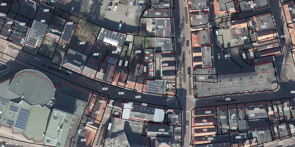 St. Agnietenstraat 31-e is gelegen op kadastraal perceel TIE00E3031. Deze kadastrale aanduiding is uniek en wordt gebruikt door het Kadaster om eigendomsrechten en andere zakelijke rechten vast te leggen. Het perceel maakt onderdeel uit van de kadastrale gemeente Tiel.