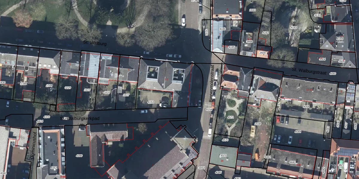 Het perceel waarop St. Walburg 1-02 staat heeft een oppervlakte van 925 m². Dit is een groot perceel. De perceeloppervlakte wordt geregistreerd door het Kadaster. Gedetailleerde informatie over de maten van dit perceel kunt u vinden in het rapport Kadastrale kaart met maatvoering van St. Walburg 1-02.