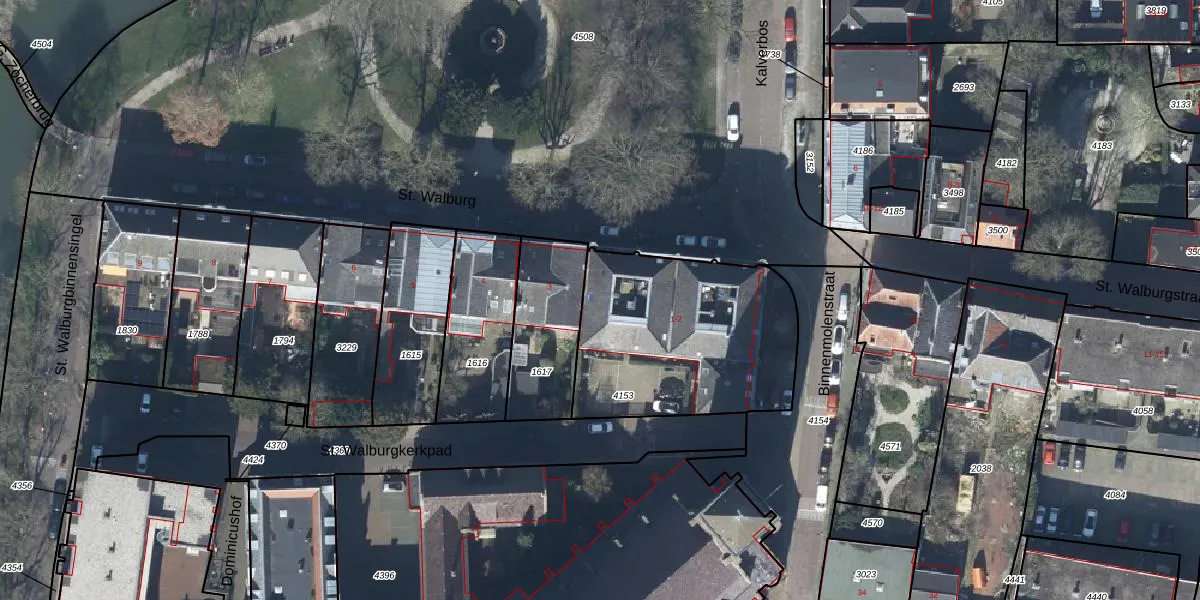 Het perceel waarop St. Walburg 2-12 staat heeft een oppervlakte van 925 m². Dit is een groot perceel. De perceeloppervlakte wordt geregistreerd door het Kadaster. Gedetailleerde informatie over de maten van dit perceel kunt u vinden in het rapport Kadastrale kaart met maatvoering van St. Walburg 2-12.