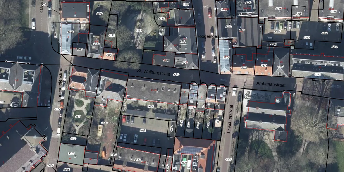 Het perceel waarop St. Walburgstraat 11-01 staat heeft een oppervlakte van 730 m². Dit is een groot perceel. De perceeloppervlakte wordt geregistreerd door het Kadaster. Gedetailleerde informatie over de maten van dit perceel kunt u vinden in het rapport Kadastrale kaart met maatvoering van St. Walburgstraat 11-01.