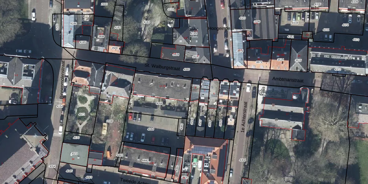 Het perceel waarop St. Walburgstraat 11-21 staat heeft een oppervlakte van 730 m². Dit is een groot perceel. De perceeloppervlakte wordt geregistreerd door het Kadaster. Gedetailleerde informatie over de maten van dit perceel kunt u vinden in het rapport Kadastrale kaart met maatvoering van St. Walburgstraat 11-21.