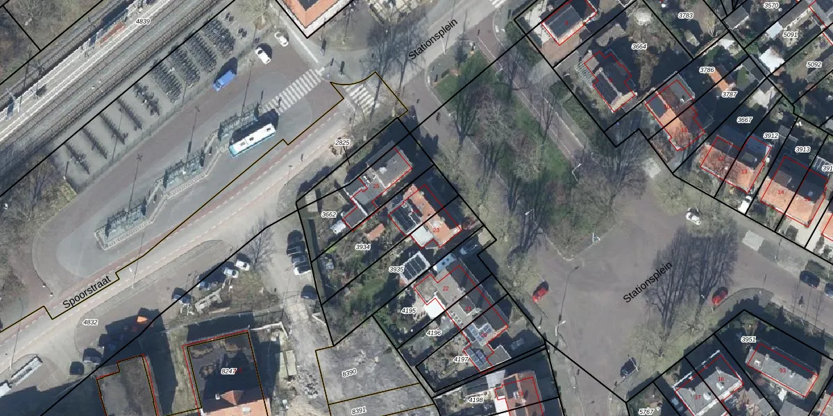 Het perceel waarop Stationsplein 24 staat heeft een oppervlakte van 374 m². Dit is een groot perceel. De perceeloppervlakte wordt geregistreerd door het Kadaster. Gedetailleerde informatie over de maten van dit perceel kunt u vinden in het rapport Kadastrale kaart met maatvoering van Stationsplein 24.
