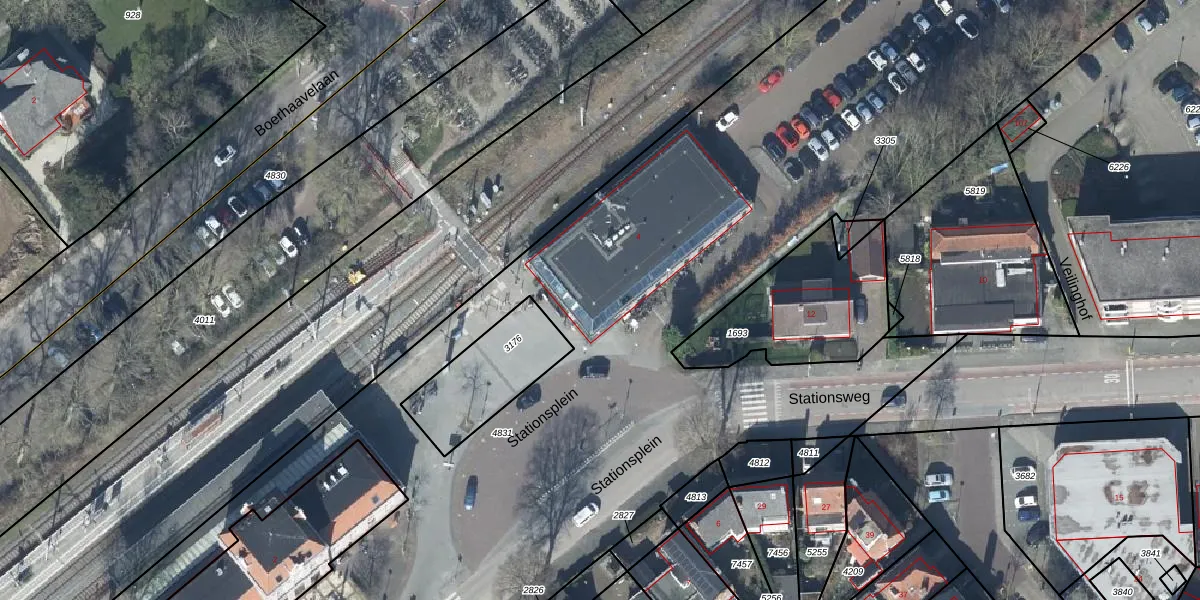 Het perceel waarop Stationsplein 5 staat heeft een oppervlakte van 1,3 ha. Dit is een zeer groot perceel. De perceeloppervlakte wordt geregistreerd door het Kadaster. Gedetailleerde informatie over de maten van dit perceel kunt u vinden in het rapport Kadastrale kaart met maatvoering van Stationsplein 5.