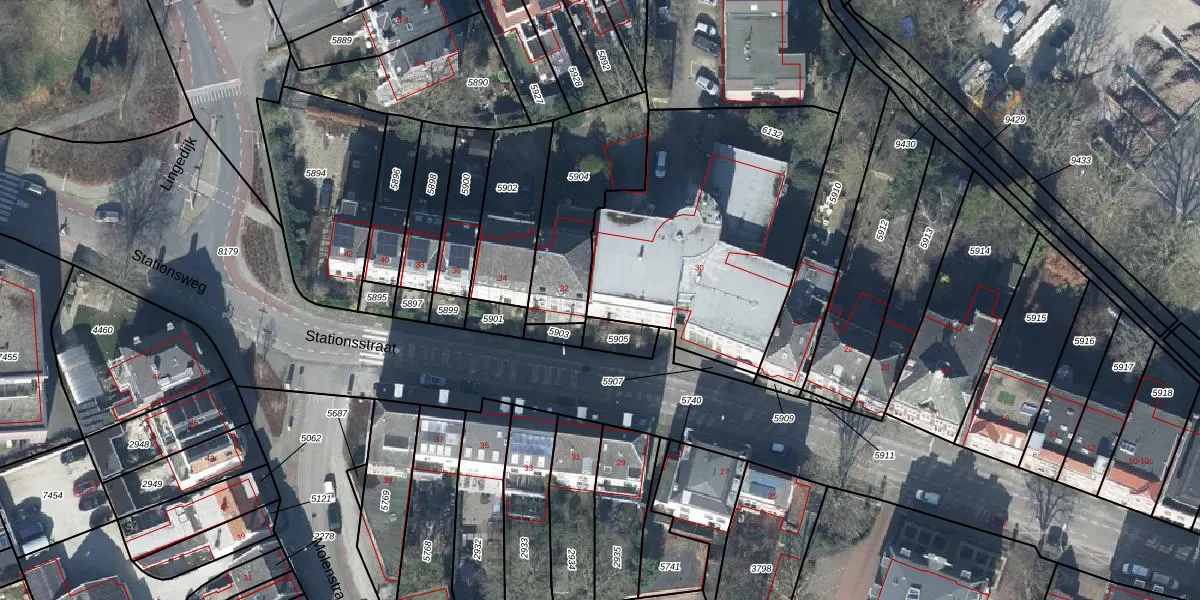 Het perceel waarop Stationsstraat 30-31 staat heeft een oppervlakte van 1276 m². Dit is een zeer groot perceel. De perceeloppervlakte wordt geregistreerd door het Kadaster. Gedetailleerde informatie over de maten van dit perceel kunt u vinden in het rapport Kadastrale kaart met maatvoering van Stationsstraat 30-31.