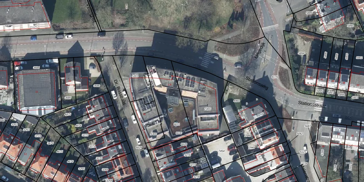 Stationsweg 5-23 is gelegen op kadastraal perceel TIE00D7455. Deze kadastrale aanduiding is uniek en wordt gebruikt door het Kadaster om eigendomsrechten en andere zakelijke rechten vast te leggen. Het perceel maakt onderdeel uit van de kadastrale gemeente Tiel.