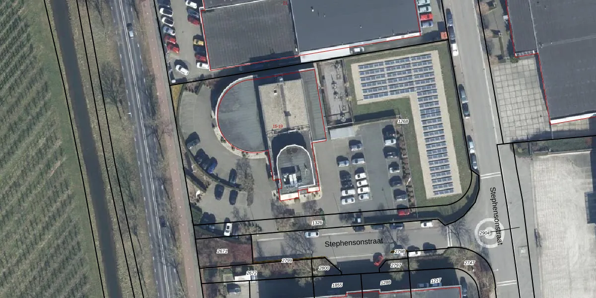 Het perceel waarop Stephensonstraat 17-d staat heeft een oppervlakte van 4845 m². Dit is een zeer groot perceel. De perceeloppervlakte wordt geregistreerd door het Kadaster. Gedetailleerde informatie over de maten van dit perceel kunt u vinden in het rapport Kadastrale kaart met maatvoering van Stephensonstraat 17-d.