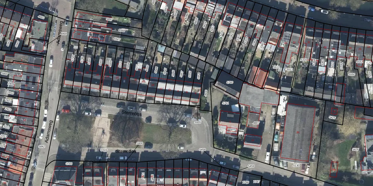 Gebruik de zoekbalk of klik op een perceel voor informatie over de adressen binnen dit perceel.