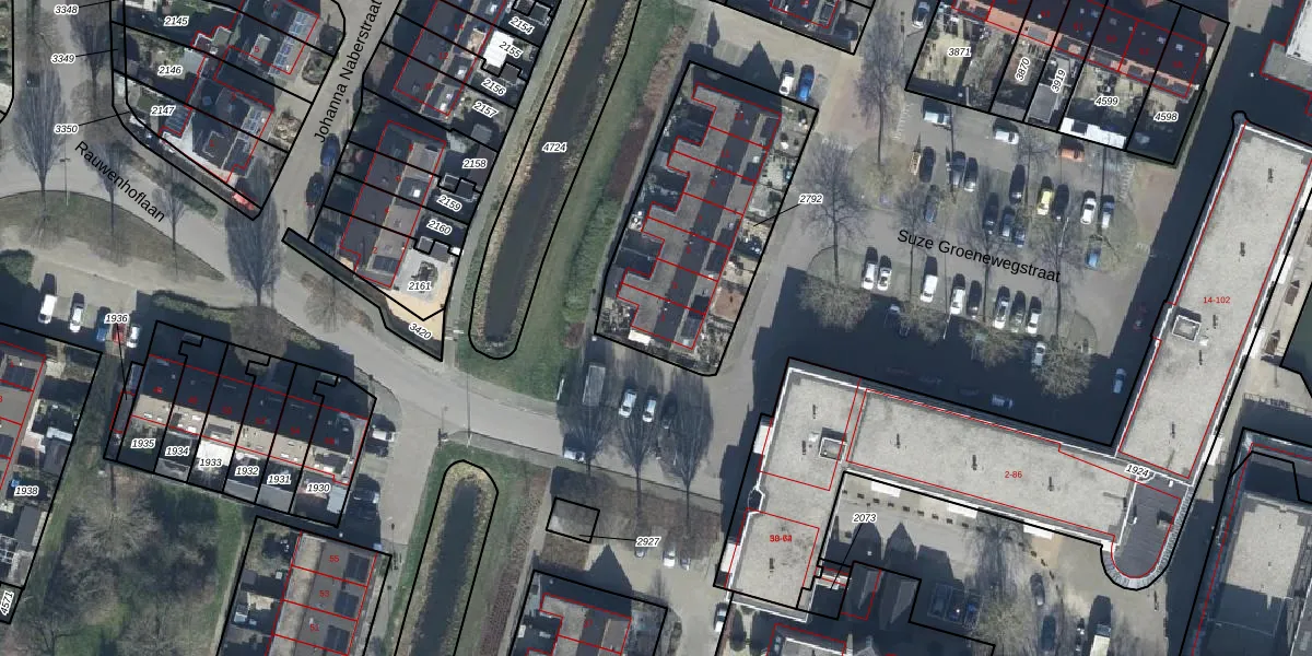 Het perceel waarop Suze Groenewegstraat 1 staat heeft een oppervlakte van 910 m². Dit is een groot perceel. De perceeloppervlakte wordt geregistreerd door het Kadaster. Gedetailleerde informatie over de maten van dit perceel kunt u vinden in het rapport Kadastrale kaart met maatvoering van Suze Groenewegstraat 1.
