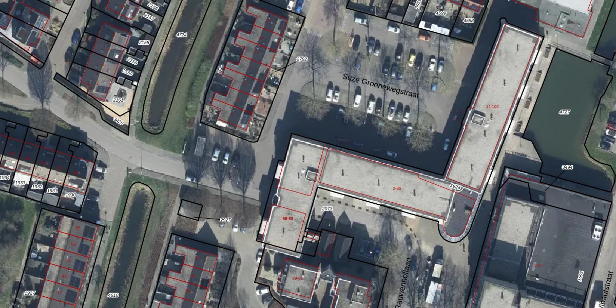 Het perceel waarop Suze Groenewegstraat 32 staat heeft een oppervlakte van 2084 m². Dit is een zeer groot perceel. De perceeloppervlakte wordt geregistreerd door het Kadaster. Gedetailleerde informatie over de maten van dit perceel kunt u vinden in het rapport Kadastrale kaart met maatvoering van Suze Groenewegstraat 32.