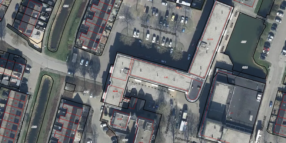 Het perceel waarop Suze Groenewegstraat 36 staat heeft een oppervlakte van 2084 m². Dit is een zeer groot perceel. De perceeloppervlakte wordt geregistreerd door het Kadaster. Gedetailleerde informatie over de maten van dit perceel kunt u vinden in het rapport Kadastrale kaart met maatvoering van Suze Groenewegstraat 36.
