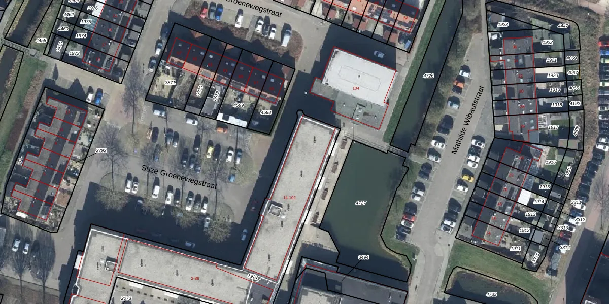 Het perceel waarop Suze Groenewegstraat 60 staat heeft een oppervlakte van 2084 m². Dit is een zeer groot perceel. De perceeloppervlakte wordt geregistreerd door het Kadaster. Gedetailleerde informatie over de maten van dit perceel kunt u vinden in het rapport Kadastrale kaart met maatvoering van Suze Groenewegstraat 60.