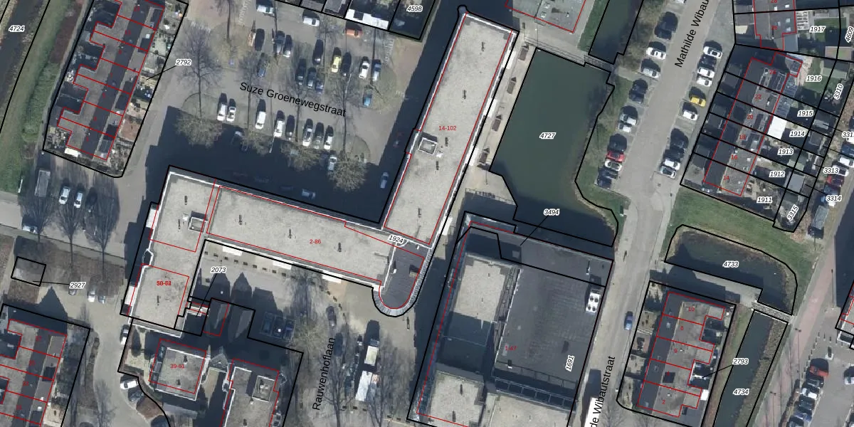 Het perceel waarop Suze Groenewegstraat 90 staat heeft een oppervlakte van 2084 m². Dit is een zeer groot perceel. De perceeloppervlakte wordt geregistreerd door het Kadaster. Gedetailleerde informatie over de maten van dit perceel kunt u vinden in het rapport Kadastrale kaart met maatvoering van Suze Groenewegstraat 90.