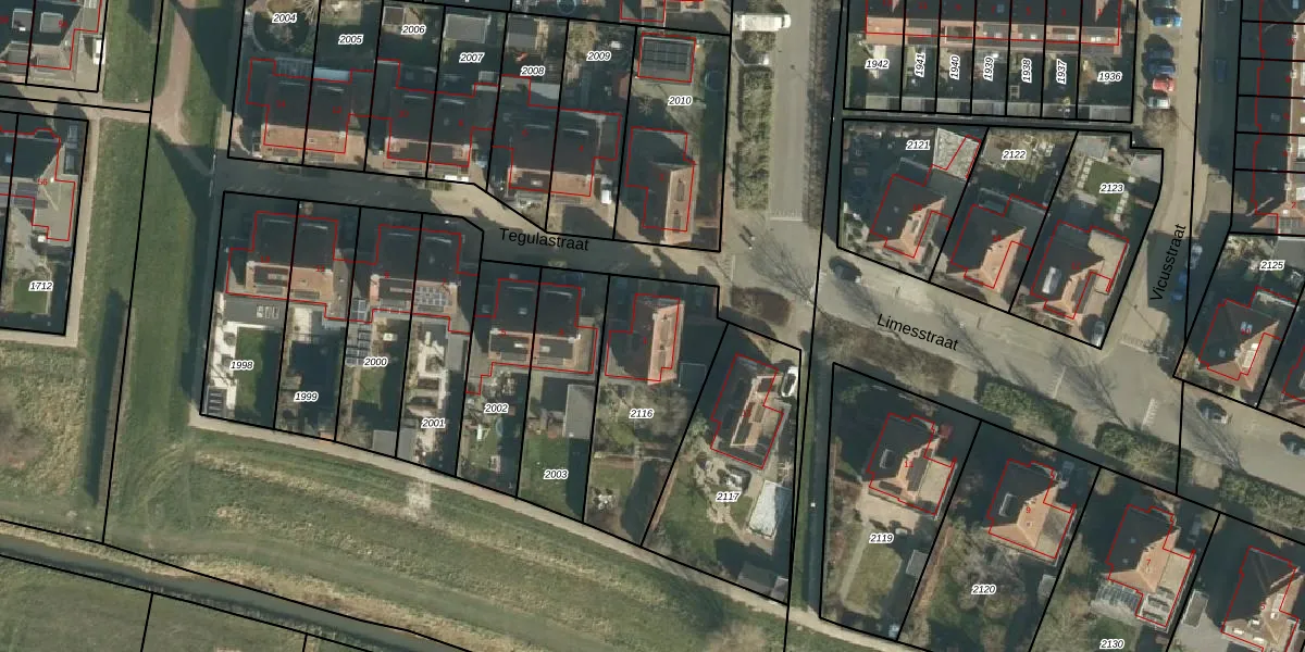 Tegulastraat 1 is gelegen op kadastraal perceel TIE00K2116. Deze kadastrale aanduiding is uniek en wordt gebruikt door het Kadaster om eigendomsrechten en andere zakelijke rechten vast te leggen. Het perceel maakt onderdeel uit van de kadastrale gemeente Tiel.