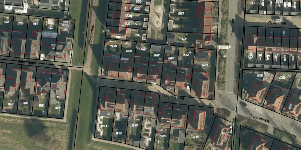 Het perceel waarop Tegulastraat 8 staat heeft een oppervlakte van 257 m². Dit is een middelgroot perceel. De perceeloppervlakte wordt geregistreerd door het Kadaster. Gedetailleerde informatie over de maten van dit perceel kunt u vinden in het rapport Kadastrale kaart met maatvoering van Tegulastraat 8.