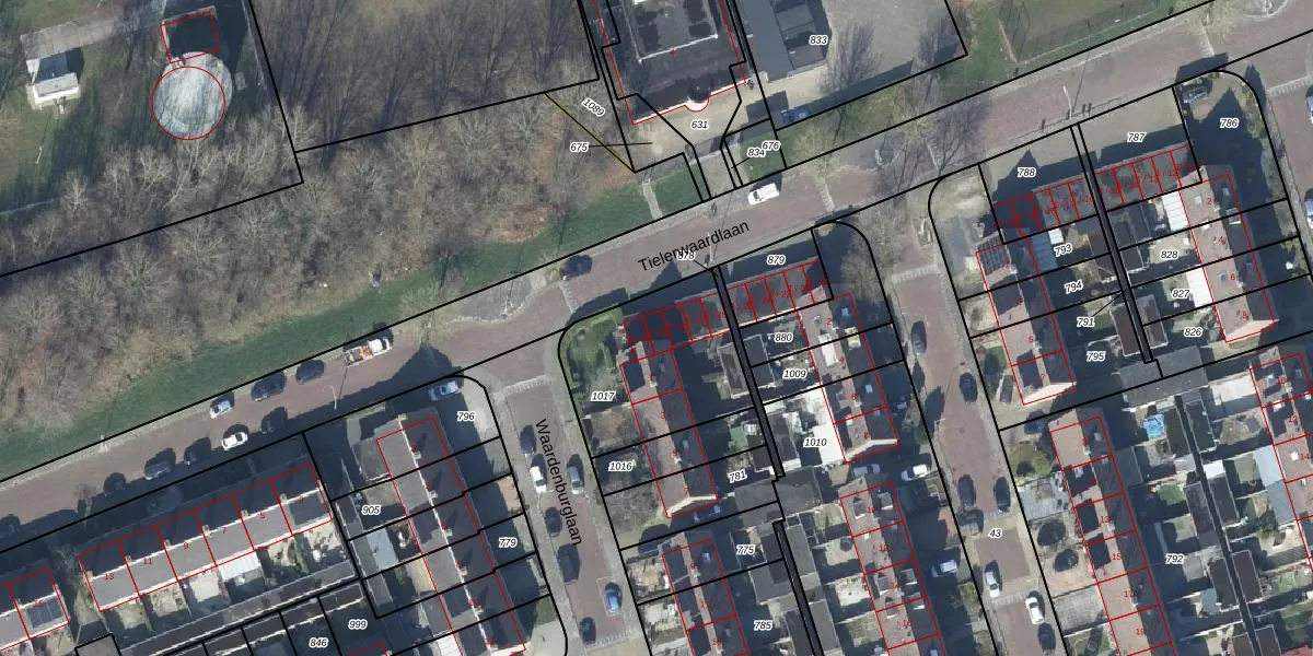 Tielerwaardlaan 1-29 is gelegen op kadastraal perceel TIE00M1017. Deze kadastrale aanduiding is uniek en wordt gebruikt door het Kadaster om eigendomsrechten en andere zakelijke rechten vast te leggen. Het perceel maakt onderdeel uit van de kadastrale gemeente Tiel.