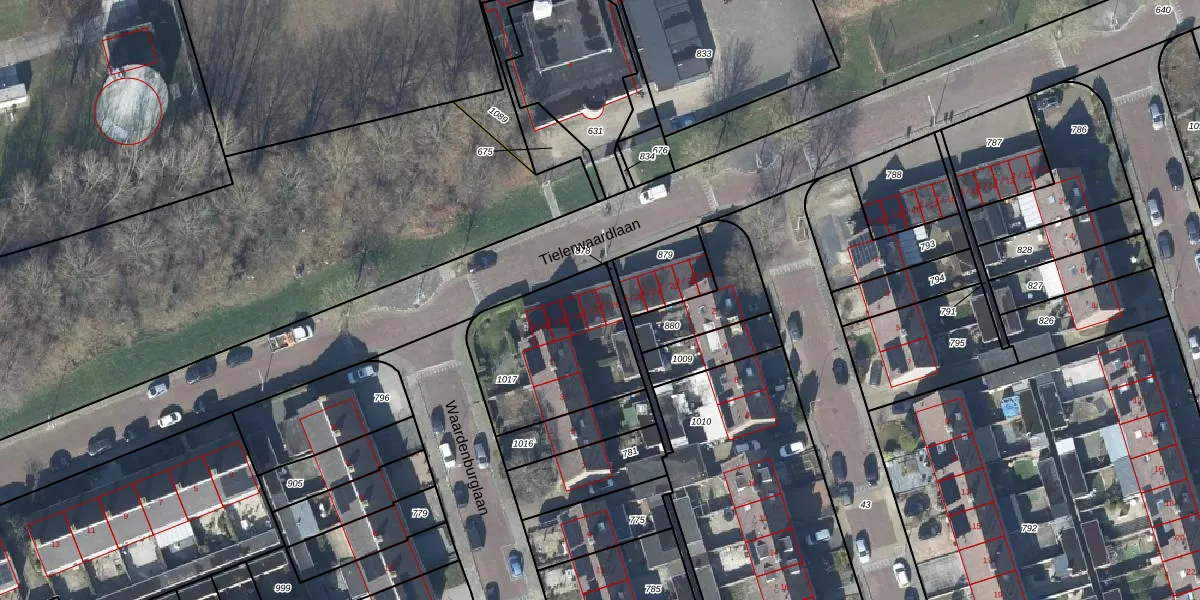 Tielerwaardlaan 1-26 is gelegen op kadastraal perceel TIE00M1017. Deze kadastrale aanduiding is uniek en wordt gebruikt door het Kadaster om eigendomsrechten en andere zakelijke rechten vast te leggen. Het perceel maakt onderdeel uit van de kadastrale gemeente Tiel.