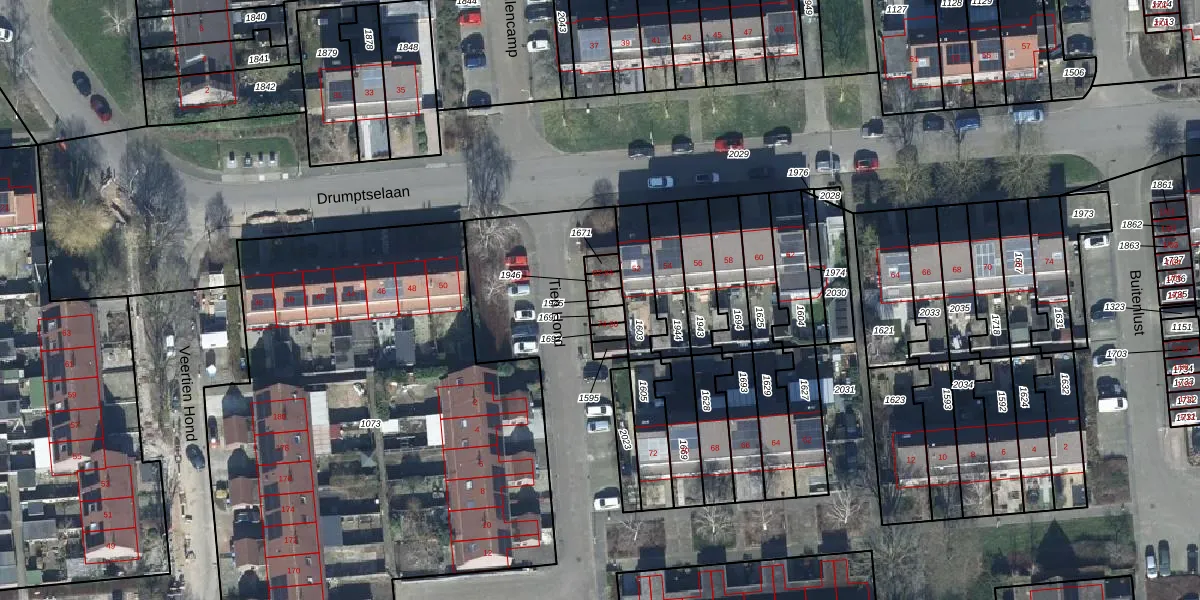 Tien Hond 80 is gelegen op kadastraal perceel TIE00G1945. Deze kadastrale aanduiding is uniek en wordt gebruikt door het Kadaster om eigendomsrechten en andere zakelijke rechten vast te leggen. Het perceel maakt onderdeel uit van de kadastrale gemeente Tiel.