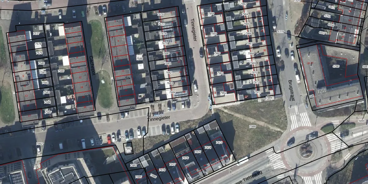 Tinnegieter 18 is gelegen op kadastraal perceel TIE00D7684. Deze kadastrale aanduiding is uniek en wordt gebruikt door het Kadaster om eigendomsrechten en andere zakelijke rechten vast te leggen. Het perceel maakt onderdeel uit van de kadastrale gemeente Tiel.