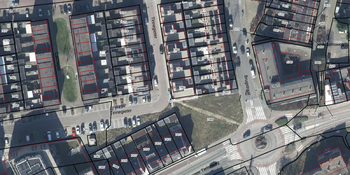 Tinnegieter 9 is gelegen op kadastraal perceel TIE00D7962. Deze kadastrale aanduiding is uniek en wordt gebruikt door het Kadaster om eigendomsrechten en andere zakelijke rechten vast te leggen. Het perceel maakt onderdeel uit van de kadastrale gemeente Tiel.