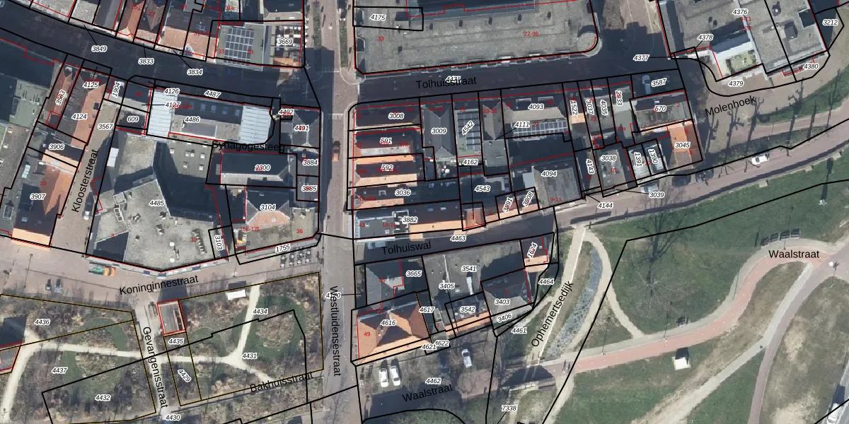 Het perceel waarop Tolhuiswal 1-b staat heeft een oppervlakte van 180 m². Dit is een middelgroot perceel. De perceeloppervlakte wordt geregistreerd door het Kadaster. Gedetailleerde informatie over de maten van dit perceel kunt u vinden in het rapport Kadastrale kaart met maatvoering van Tolhuiswal 1-b.