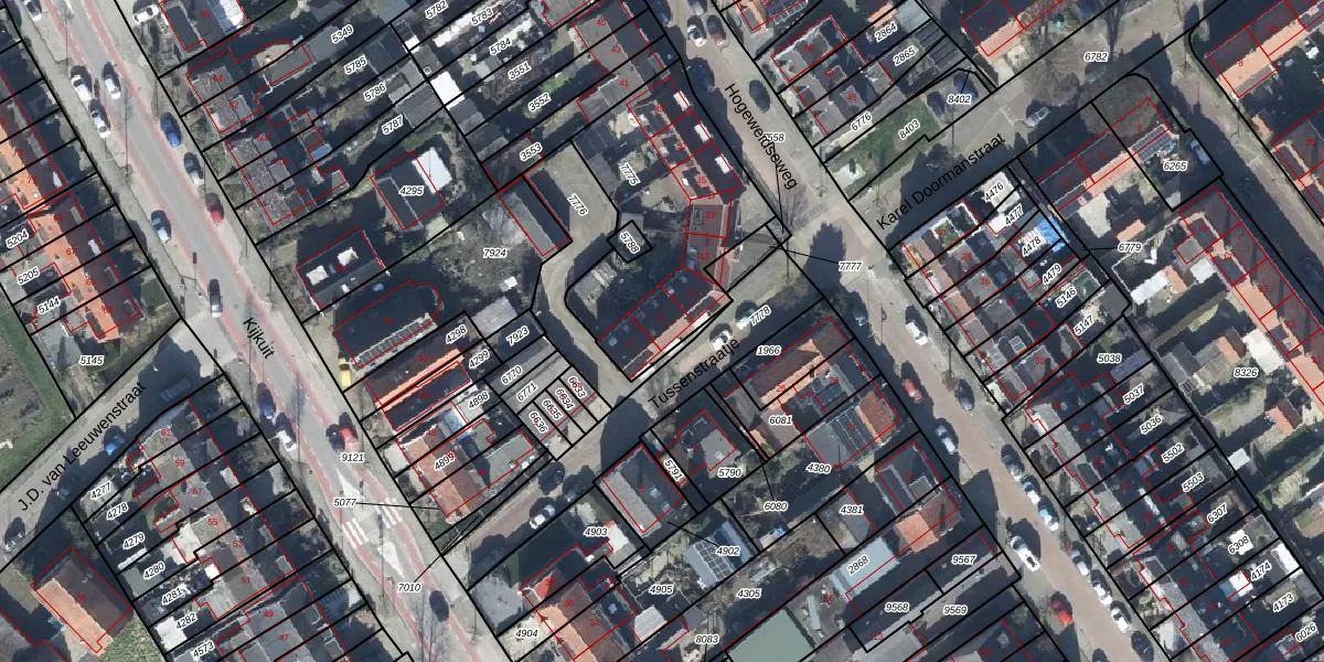Tussenstraatje 9 is gelegen op kadastraal perceel TIE00C7775. Deze kadastrale aanduiding is uniek en wordt gebruikt door het Kadaster om eigendomsrechten en andere zakelijke rechten vast te leggen. Het perceel maakt onderdeel uit van de kadastrale gemeente Tiel.
