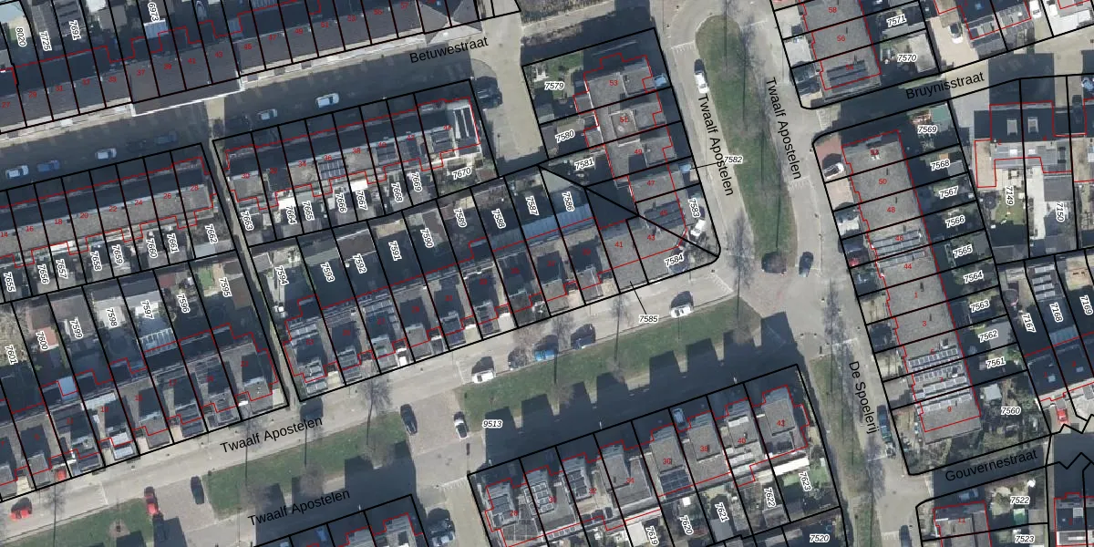 Het perceel waarop Twaalf Apostelen 37 staat heeft een oppervlakte van 179 m². Dit is een middelgroot perceel. De perceeloppervlakte wordt geregistreerd door het Kadaster. Gedetailleerde informatie over de maten van dit perceel kunt u vinden in het rapport Kadastrale kaart met maatvoering van Twaalf Apostelen 37.