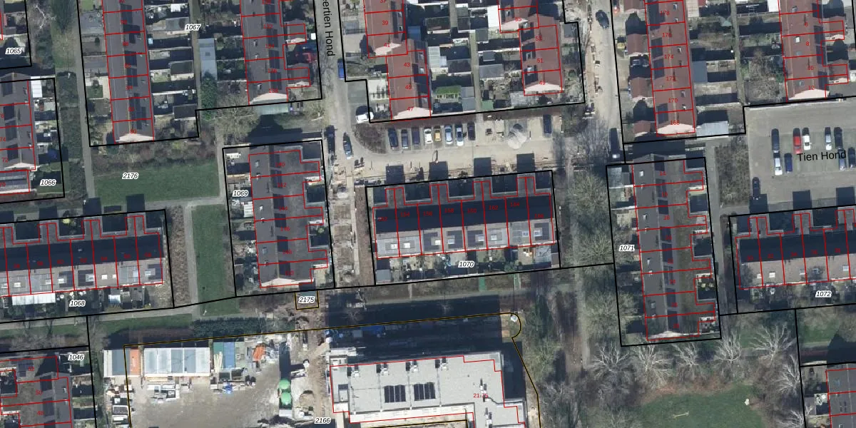 Veertien Hond 156 is gelegen op kadastraal perceel TIE00G1070. Deze kadastrale aanduiding is uniek en wordt gebruikt door het Kadaster om eigendomsrechten en andere zakelijke rechten vast te leggen. Het perceel maakt onderdeel uit van de kadastrale gemeente Tiel.