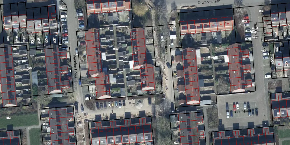 Veertien Hond 53 is gelegen op kadastraal perceel TIE00G1074. Deze kadastrale aanduiding is uniek en wordt gebruikt door het Kadaster om eigendomsrechten en andere zakelijke rechten vast te leggen. Het perceel maakt onderdeel uit van de kadastrale gemeente Tiel.