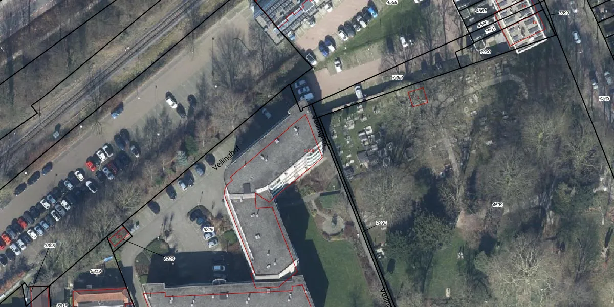 Het perceel waarop Veilinghof 41 staat heeft een oppervlakte van 4983 m². Dit is een zeer groot perceel. De perceeloppervlakte wordt geregistreerd door het Kadaster. Gedetailleerde informatie over de maten van dit perceel kunt u vinden in het rapport Kadastrale kaart met maatvoering van Veilinghof 41.