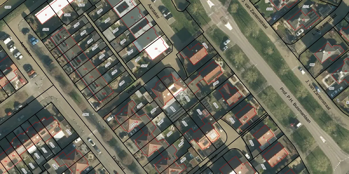 Gebruik de zoekbalk of klik op een perceel voor informatie over de adressen binnen dit perceel.