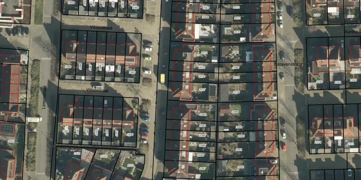 Het perceel waarop Vicusstraat 14 staat heeft een oppervlakte van 295 m². Dit is een middelgroot perceel. De perceeloppervlakte wordt geregistreerd door het Kadaster. Gedetailleerde informatie over de maten van dit perceel kunt u vinden in het rapport Kadastrale kaart met maatvoering van Vicusstraat 14.