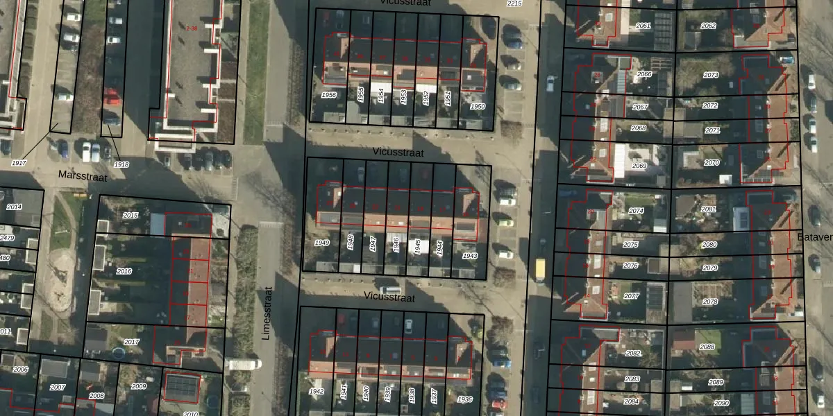 Het perceel waarop Vicusstraat 19 staat heeft een oppervlakte van 148 m². Dit is een middelgroot perceel. De perceeloppervlakte wordt geregistreerd door het Kadaster. Gedetailleerde informatie over de maten van dit perceel kunt u vinden in het rapport Kadastrale kaart met maatvoering van Vicusstraat 19.