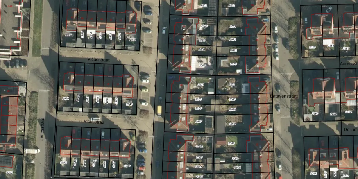 Het perceel waarop Vicusstraat 20 staat heeft een oppervlakte van 293 m². Dit is een middelgroot perceel. De perceeloppervlakte wordt geregistreerd door het Kadaster. Gedetailleerde informatie over de maten van dit perceel kunt u vinden in het rapport Kadastrale kaart met maatvoering van Vicusstraat 20.