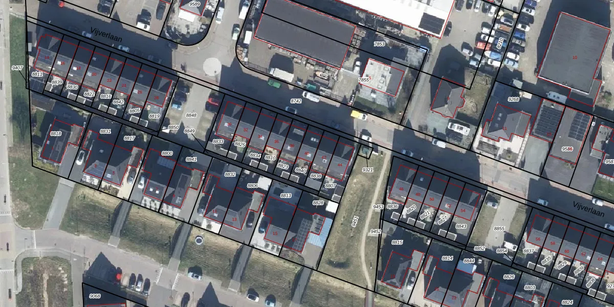 Het perceel waarop Vijverlaan 40 staat heeft een oppervlakte van 104 m². Dit is een middelgroot perceel. De perceeloppervlakte wordt geregistreerd door het Kadaster. Gedetailleerde informatie over de maten van dit perceel kunt u vinden in het rapport Kadastrale kaart met maatvoering van Vijverlaan 40.
