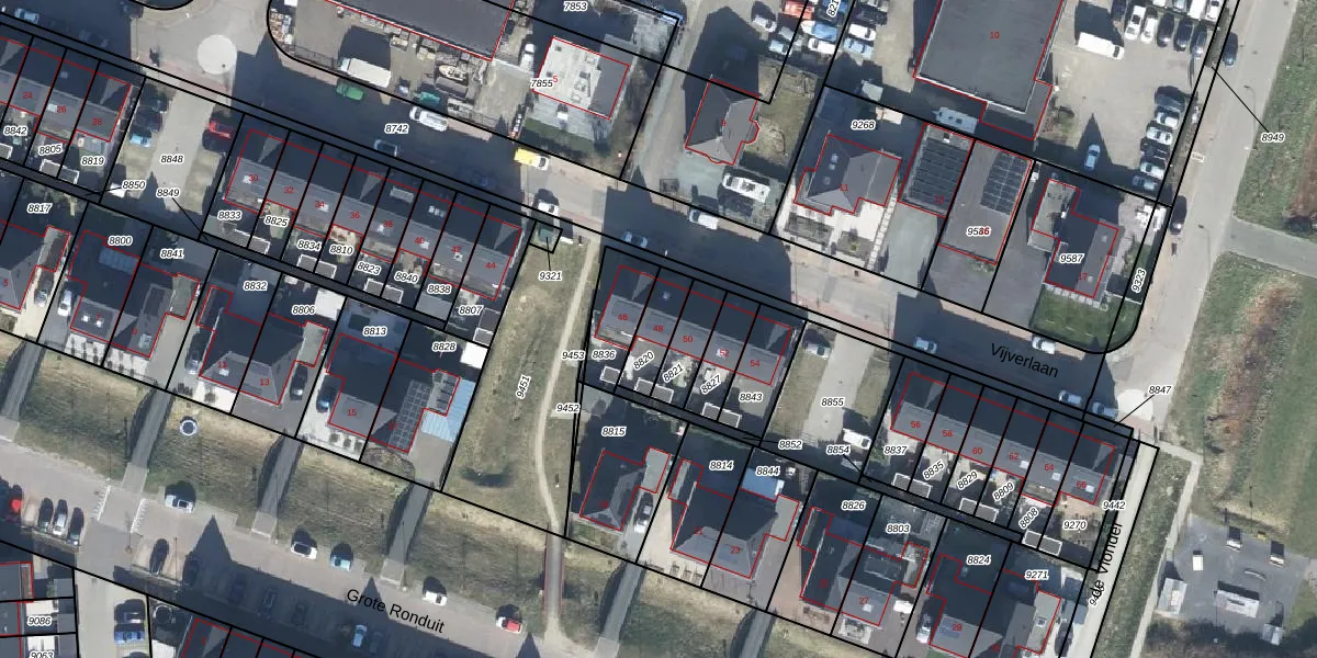 Het perceel waarop Vijverlaan 48 staat heeft een oppervlakte van 104 m². Dit is een middelgroot perceel. De perceeloppervlakte wordt geregistreerd door het Kadaster. Gedetailleerde informatie over de maten van dit perceel kunt u vinden in het rapport Kadastrale kaart met maatvoering van Vijverlaan 48.