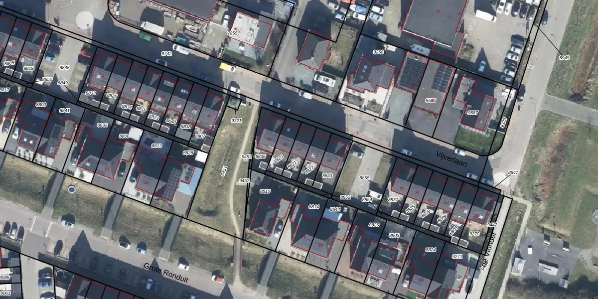Het perceel waarop Vijverlaan 50 staat heeft een oppervlakte van 104 m². Dit is een middelgroot perceel. De perceeloppervlakte wordt geregistreerd door het Kadaster. Gedetailleerde informatie over de maten van dit perceel kunt u vinden in het rapport Kadastrale kaart met maatvoering van Vijverlaan 50.