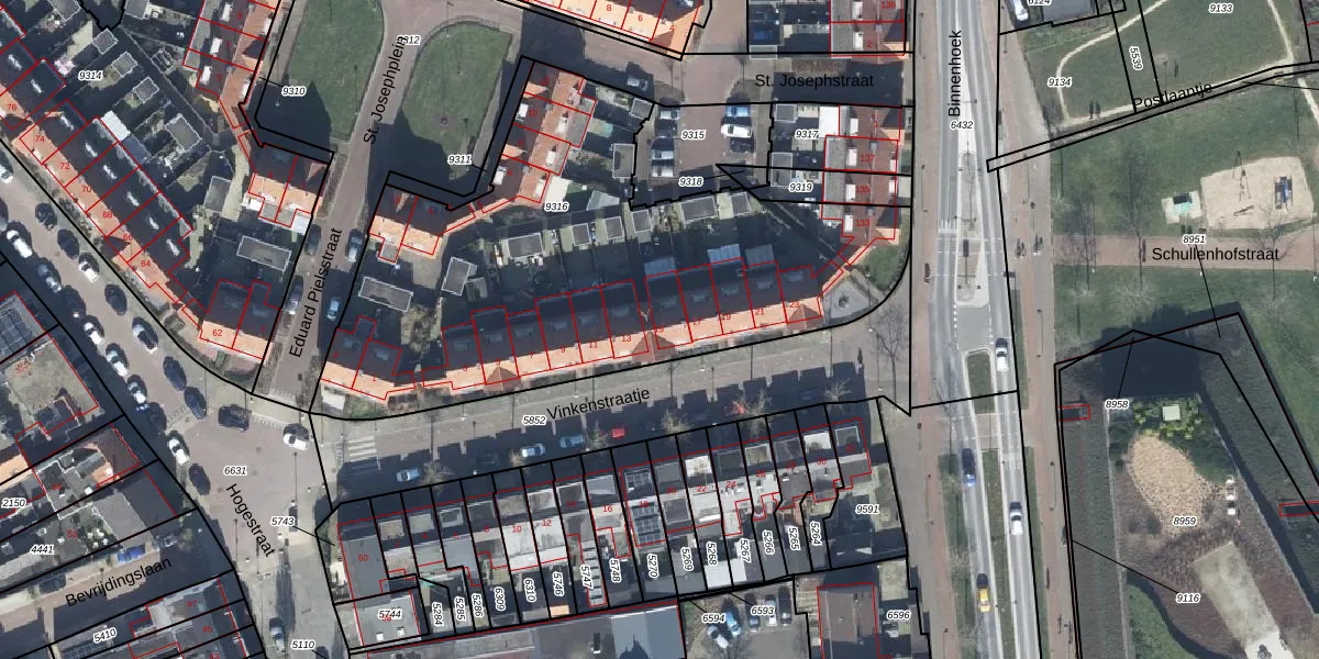 Vinkenstraatje 15 is gelegen op kadastraal perceel TIE00C9316. Deze kadastrale aanduiding is uniek en wordt gebruikt door het Kadaster om eigendomsrechten en andere zakelijke rechten vast te leggen. Het perceel maakt onderdeel uit van de kadastrale gemeente Tiel.