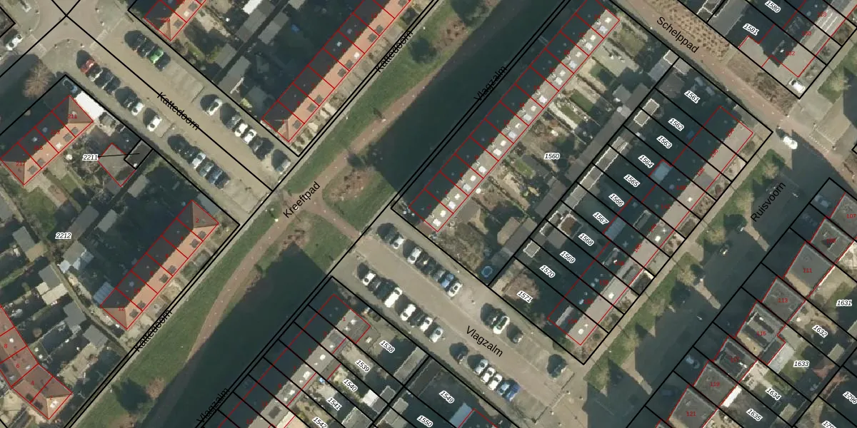 Het perceel waarop Vlagzalm 2 staat heeft een oppervlakte van 1998 m². Dit is een zeer groot perceel. De perceeloppervlakte wordt geregistreerd door het Kadaster. Gedetailleerde informatie over de maten van dit perceel kunt u vinden in het rapport Kadastrale kaart met maatvoering van Vlagzalm 2.