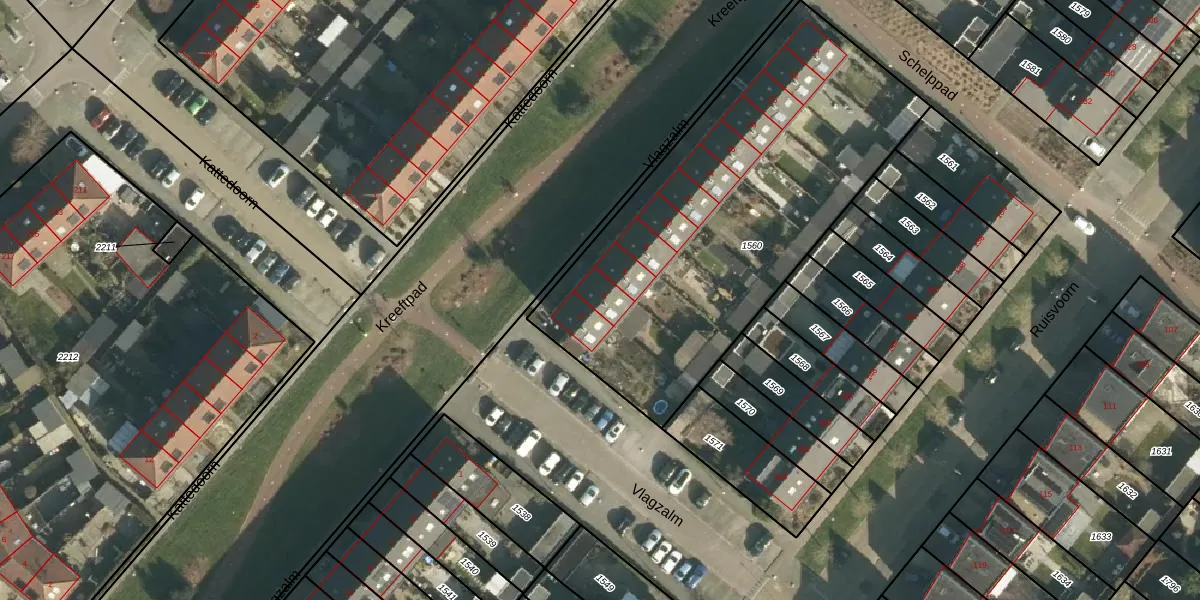 Het perceel waarop Vlagzalm 4 staat heeft een oppervlakte van 1998 m². Dit is een zeer groot perceel. De perceeloppervlakte wordt geregistreerd door het Kadaster. Gedetailleerde informatie over de maten van dit perceel kunt u vinden in het rapport Kadastrale kaart met maatvoering van Vlagzalm 4.