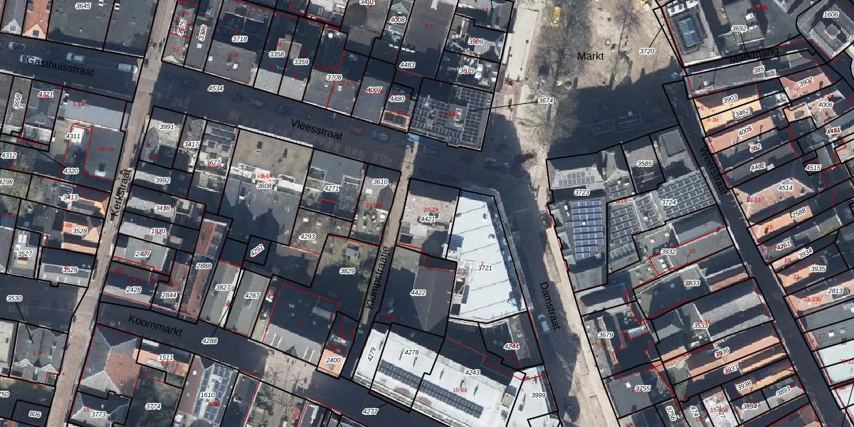 Het perceel waarop Vleesstraat 22 staat heeft een oppervlakte van 192 m². Dit is een middelgroot perceel. De perceeloppervlakte wordt geregistreerd door het Kadaster. Gedetailleerde informatie over de maten van dit perceel kunt u vinden in het rapport Kadastrale kaart met maatvoering van Vleesstraat 22.
