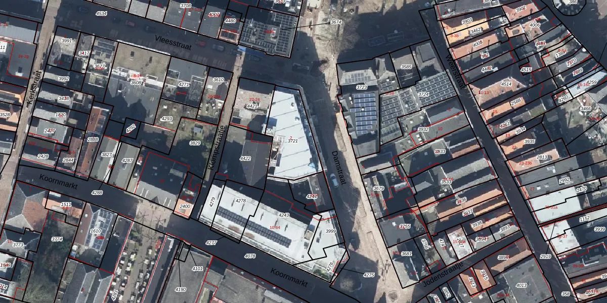 Vleesstraat 36 is gelegen op kadastraal perceel TIE00E3721. Deze kadastrale aanduiding is uniek en wordt gebruikt door het Kadaster om eigendomsrechten en andere zakelijke rechten vast te leggen. Het perceel maakt onderdeel uit van de kadastrale gemeente Tiel.