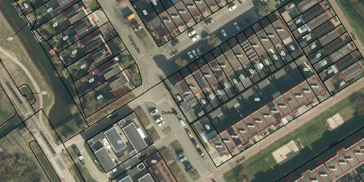 Vliet 43 is gelegen op kadastraal perceel TIE00P452. Deze kadastrale aanduiding is uniek en wordt gebruikt door het Kadaster om eigendomsrechten en andere zakelijke rechten vast te leggen. Het perceel maakt onderdeel uit van de kadastrale gemeente Tiel.