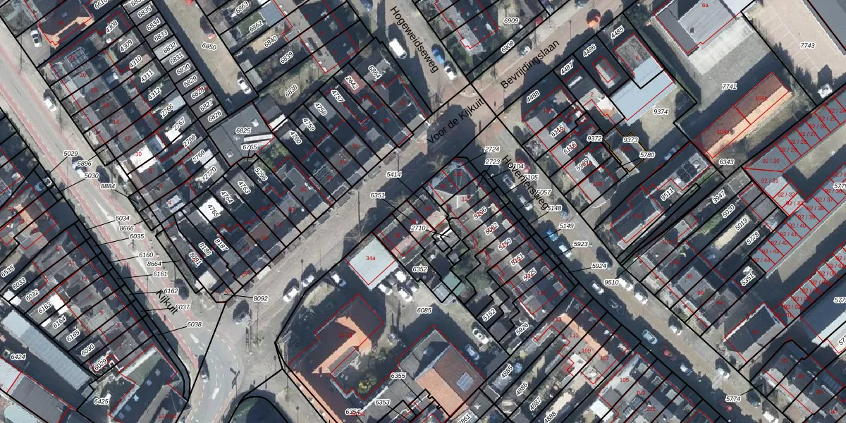 Gebruik de zoekbalk of klik op een perceel voor informatie over de adressen binnen dit perceel.