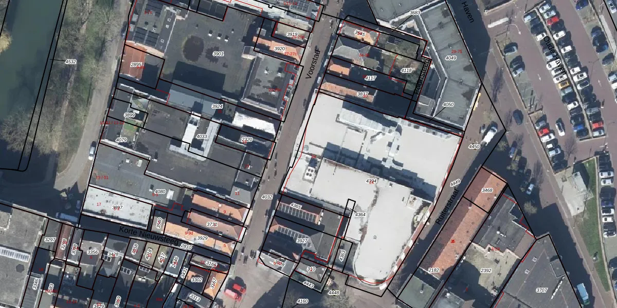 Het perceel waarop Voorstad 24 staat heeft een oppervlakte van 2053 m². Dit is een zeer groot perceel. De perceeloppervlakte wordt geregistreerd door het Kadaster. Gedetailleerde informatie over de maten van dit perceel kunt u vinden in het rapport Kadastrale kaart met maatvoering van Voorstad 24.